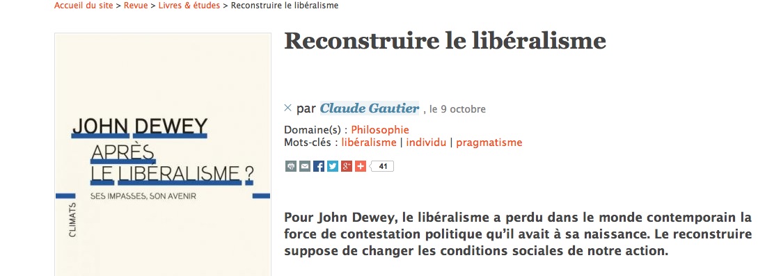 Belle recension détaillée par C Gautier de la traduction française de Liberalism and Social action, dans La vie des idées