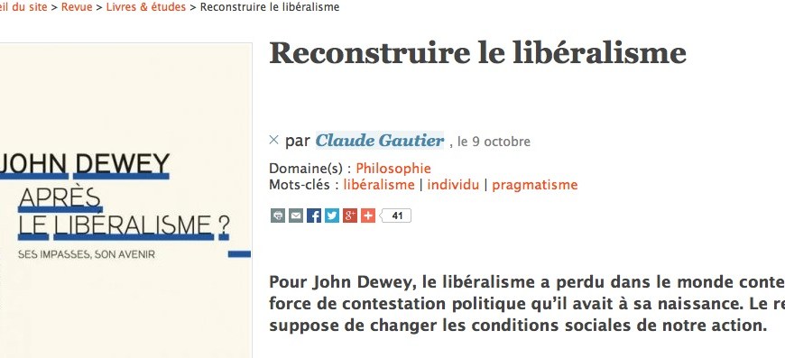 Belle recension détaillée par C Gautier de la traduction française de Liberalism and Social action, dans La vie des idées voir aussi l’introduction à l’ouvrage/préface par G. Garreta, qui est un vrai texte sur le livre qui suit. Continuer de lire Sur Après le libéralisme, de John Dewey